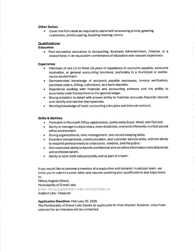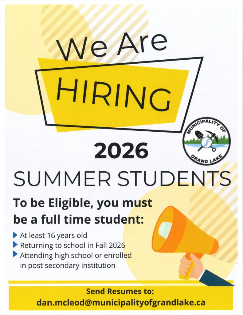 📧 Submit to: alyson.boudreau@municipalityofgrandlake.ca