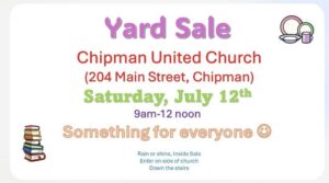 π Date: Saturday, July 12thπ Time: 9:00 AM – 12:00 PMπ Location: Chipman United Church