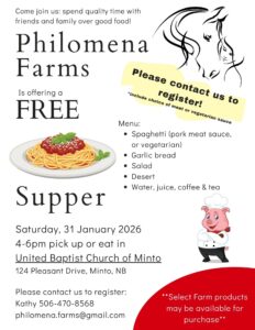 Please register in advance to plan for numbers CALL (506) 470-8565 or EMAIL philomena.farms@gmail.com