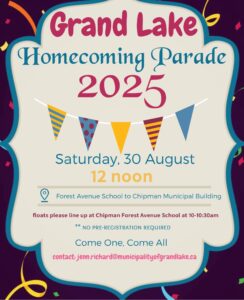 Floats please line up at Chipman Forest Avenue School at 10-10:30am. No Pre-registration Required. Parade will travel from Chipman Forest Avenue School to Chipman Municipal Building.